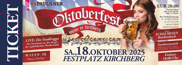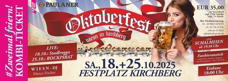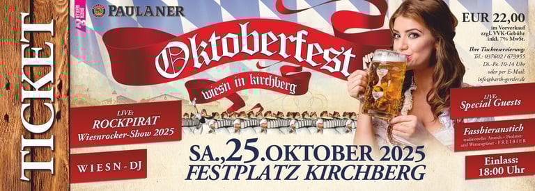 O’zapft is – und damit Sie mitten im Kirchberger Wiesn-Trubel dabei sind, sichern Sie sich am besten gleich Ihre Karten! 🍻🎶